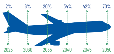 - 미국은 2050년까지 항공유 수요의 100%를 SAF로 충족한다는 목표를 세웠습니다.